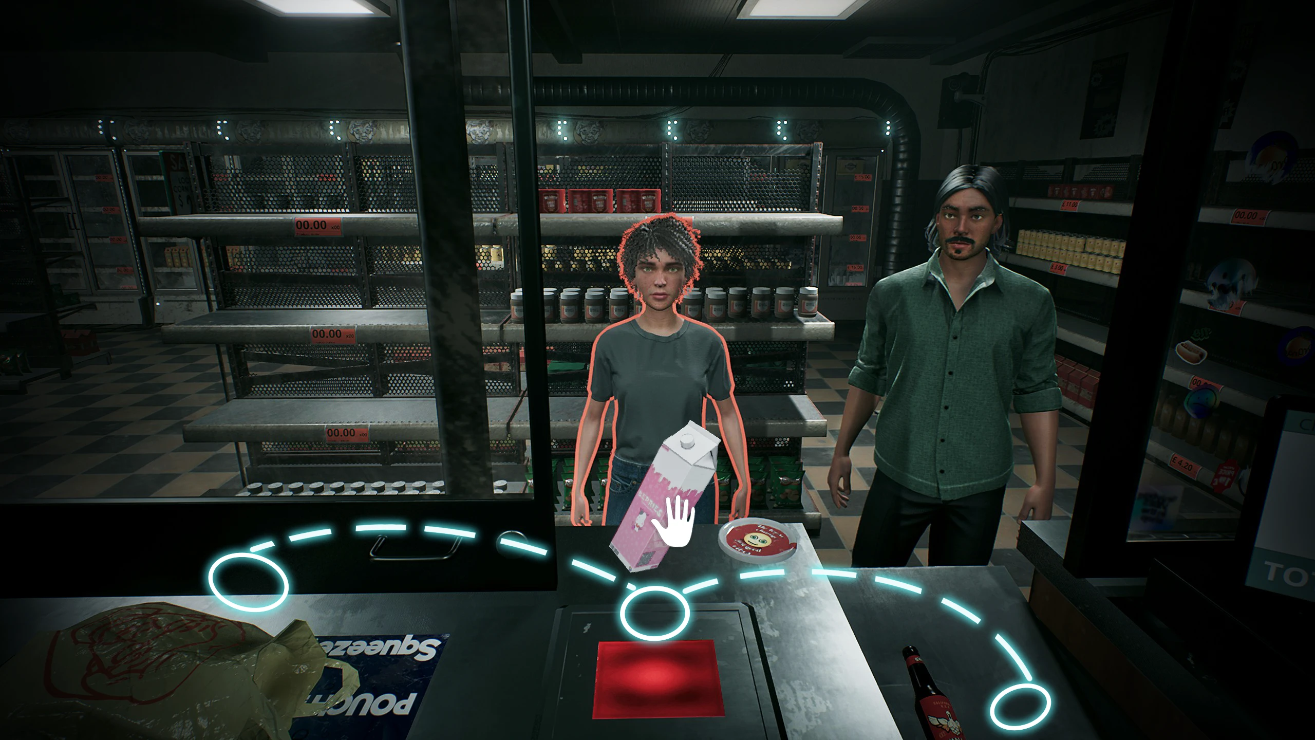 Vrlo brzo igra ubacuje “komplikacije” – no ne u klasičnom smislu. Umjesto zahtjevnijih poslovnih izazova, pojavljuju se halucinacije i nadnaravni elementi. Učinilo vam se da se nešto pomiče. Svjetla se gase. Odjednom jurite do osigurača dok vas nešto prati. Je li to kupac ili nešto drugo?