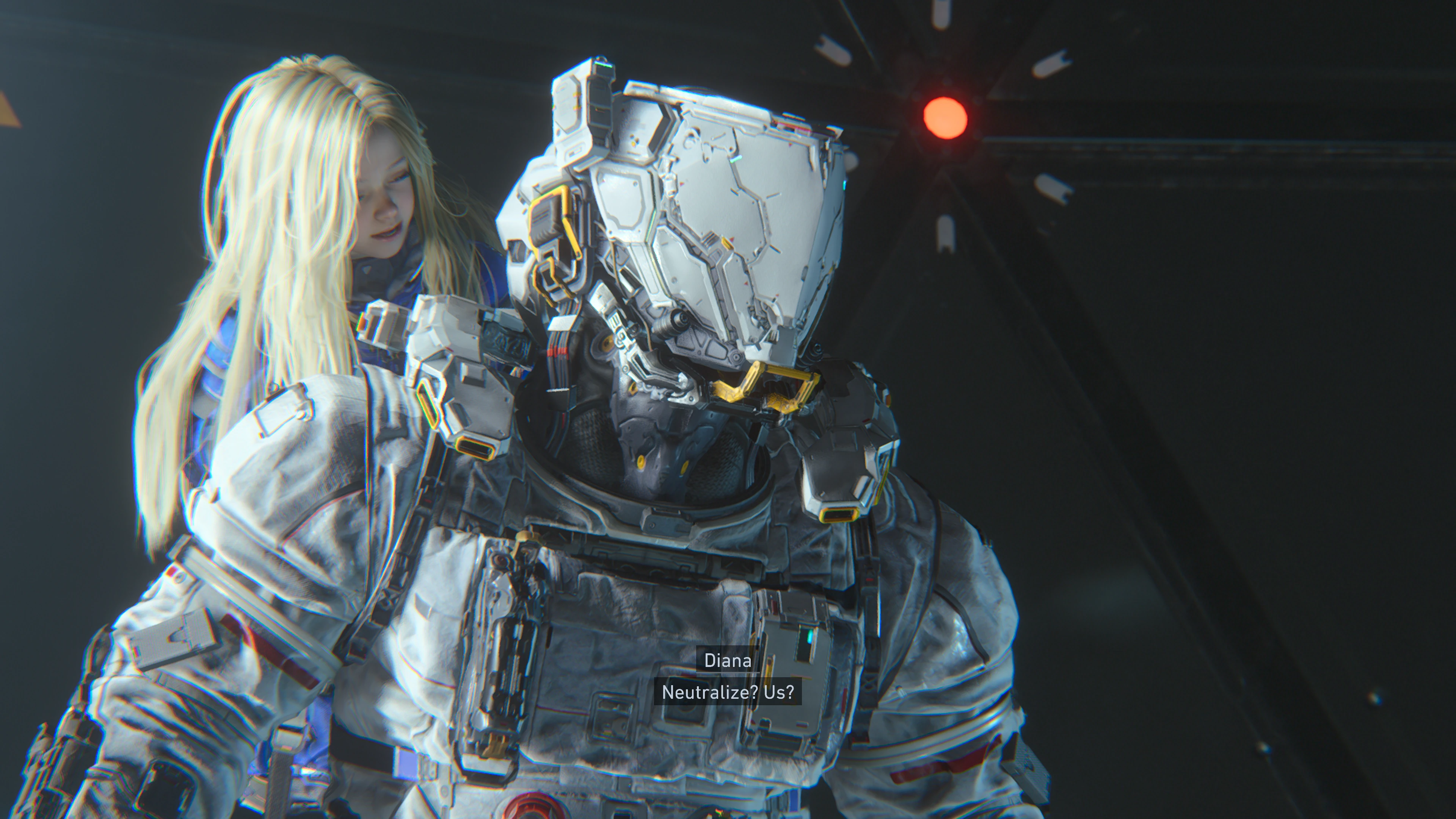 U tom trenutku na scenu stupa Diana, misteriozna android djevojčica koja postaje ključ njegovog opstanka. Ono što je moglo biti tek još jedno generično “AI companion” rješenje pretvara se u dušu Pragmate. Njihov odnos razvija se postepeno, kroz dijaloge, situacije i zajedničke trenutke, a igra pametno daje dovoljno prostora da taj odnos djeluje prirodno i uvjerljivo.